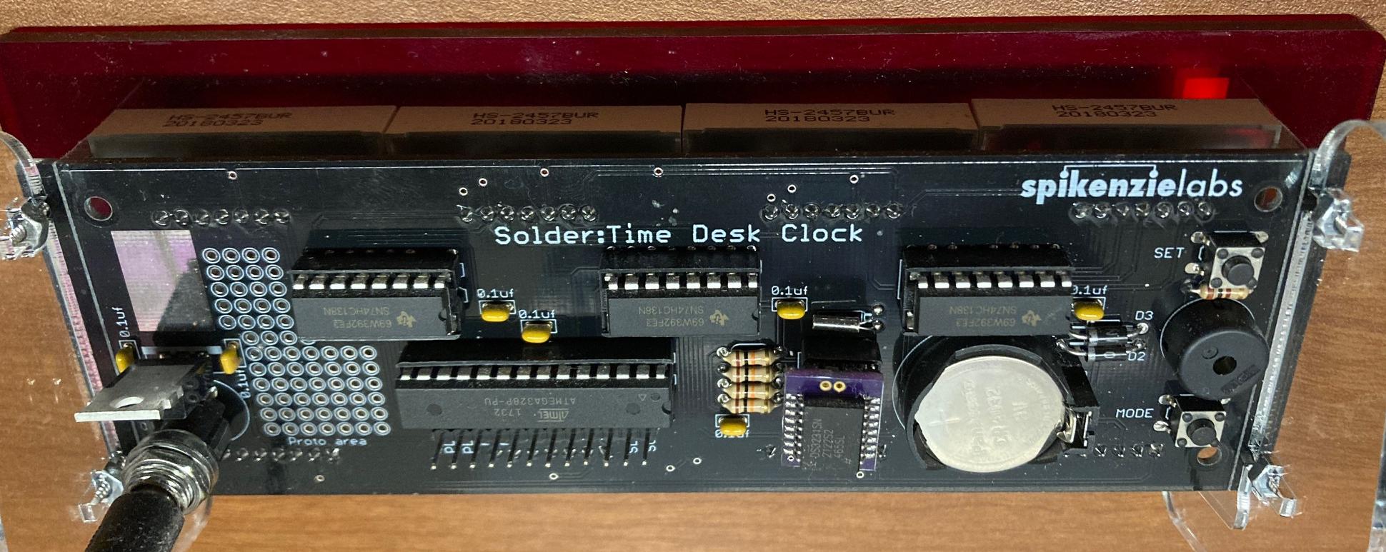 The only down-side to the clock is that it is based on the DS1317 Real-Time Clock (RTC) IC which can drift by 50 parts per million (ppm). This can be up to 4 seconds per day. Since this can add up to a couple minutes per month, the time needs to be reset every month or two.