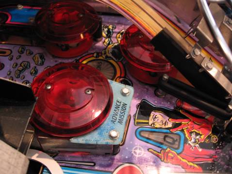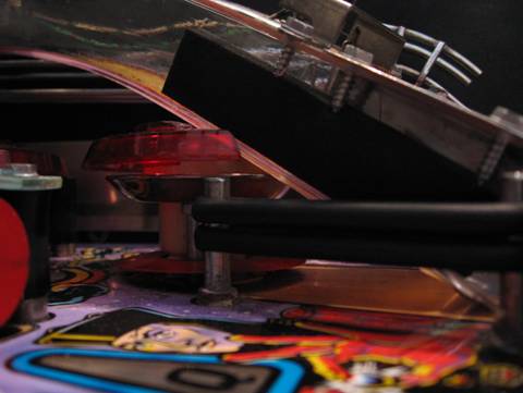 Since there may be others that want to add this, I’ve captured the template to cut one out. This will save you the trial-and-error to get the right clearance under the Beta ramp. Just print the template out full size and set the new pop bumper cap (Williams part number 03-8254-9) on top to mark the cut-out. I used a Sharpie.