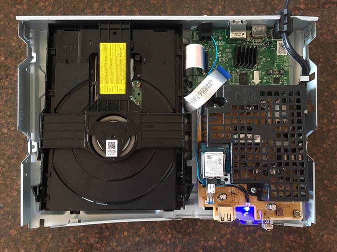 Shown here is a simple modification to add an LED to indicate that the Blu-Ray player is powered on.
